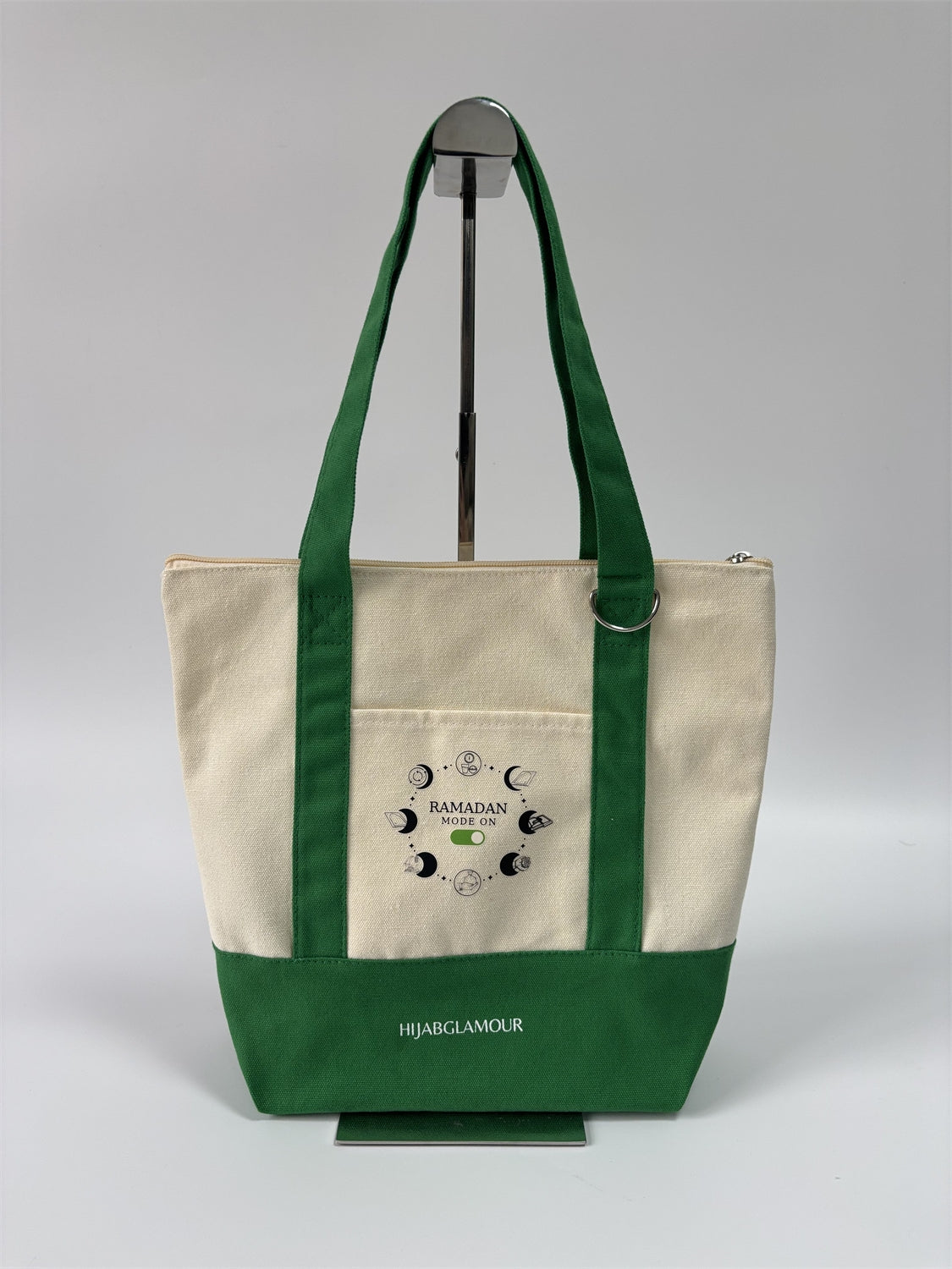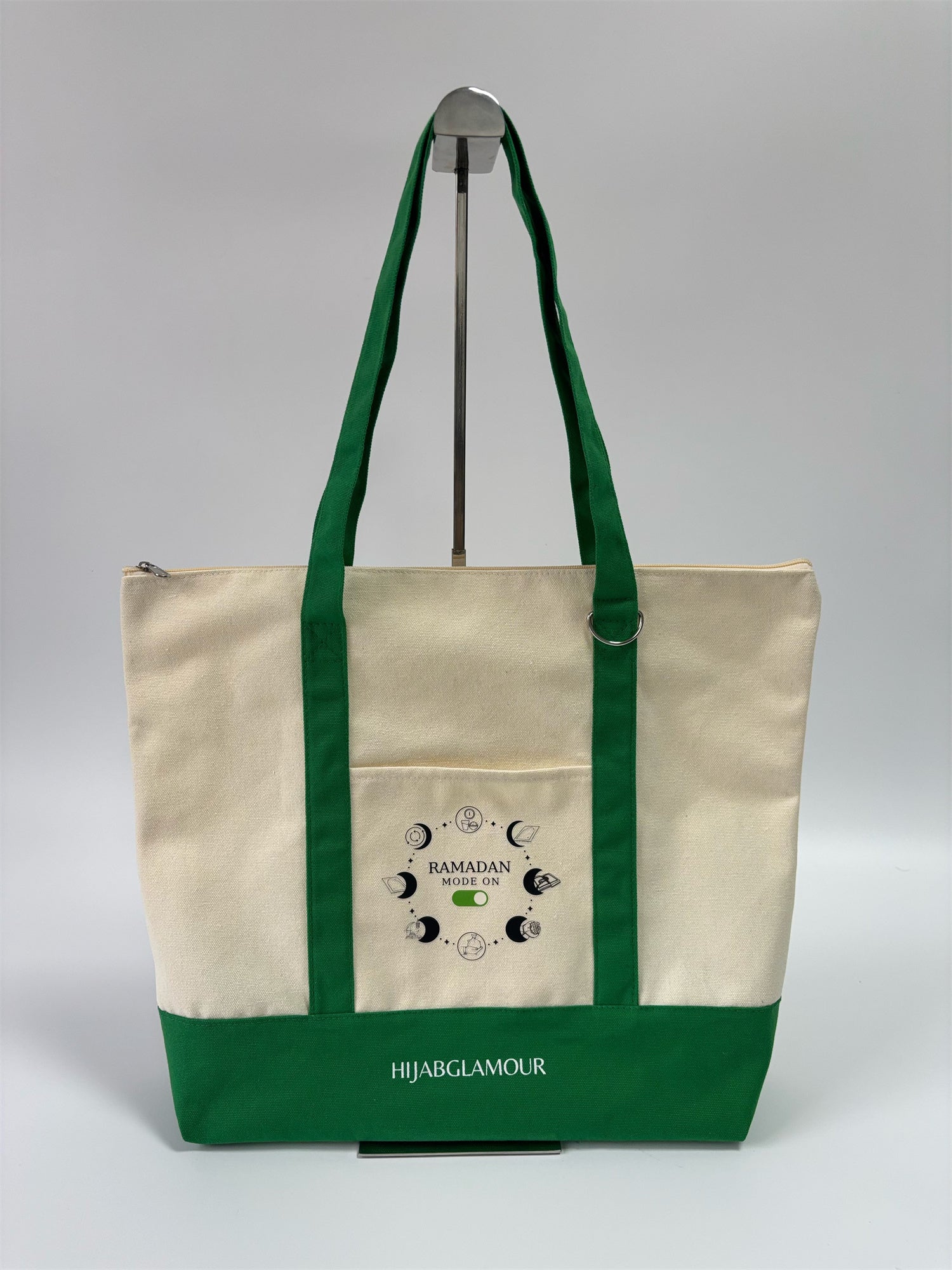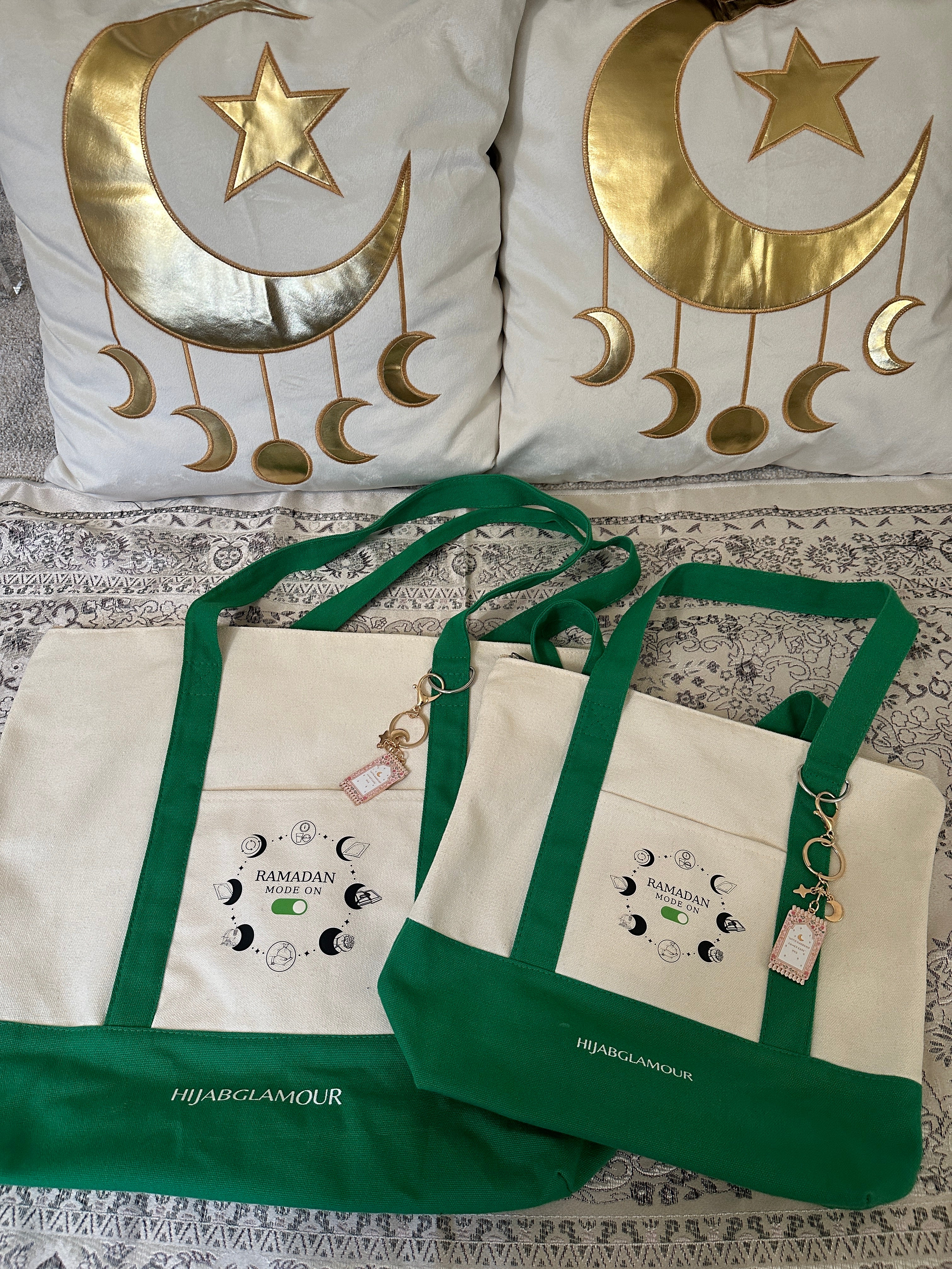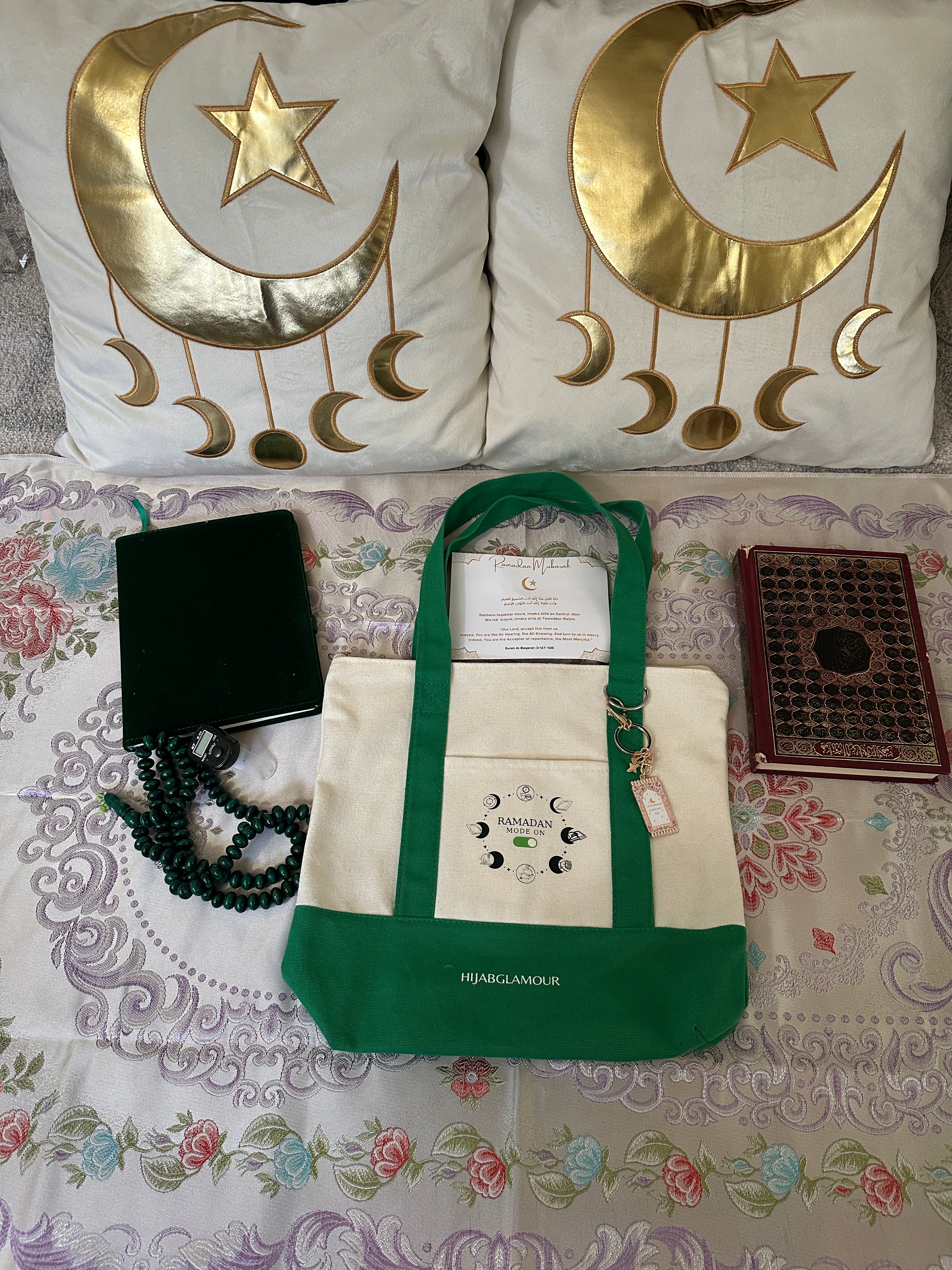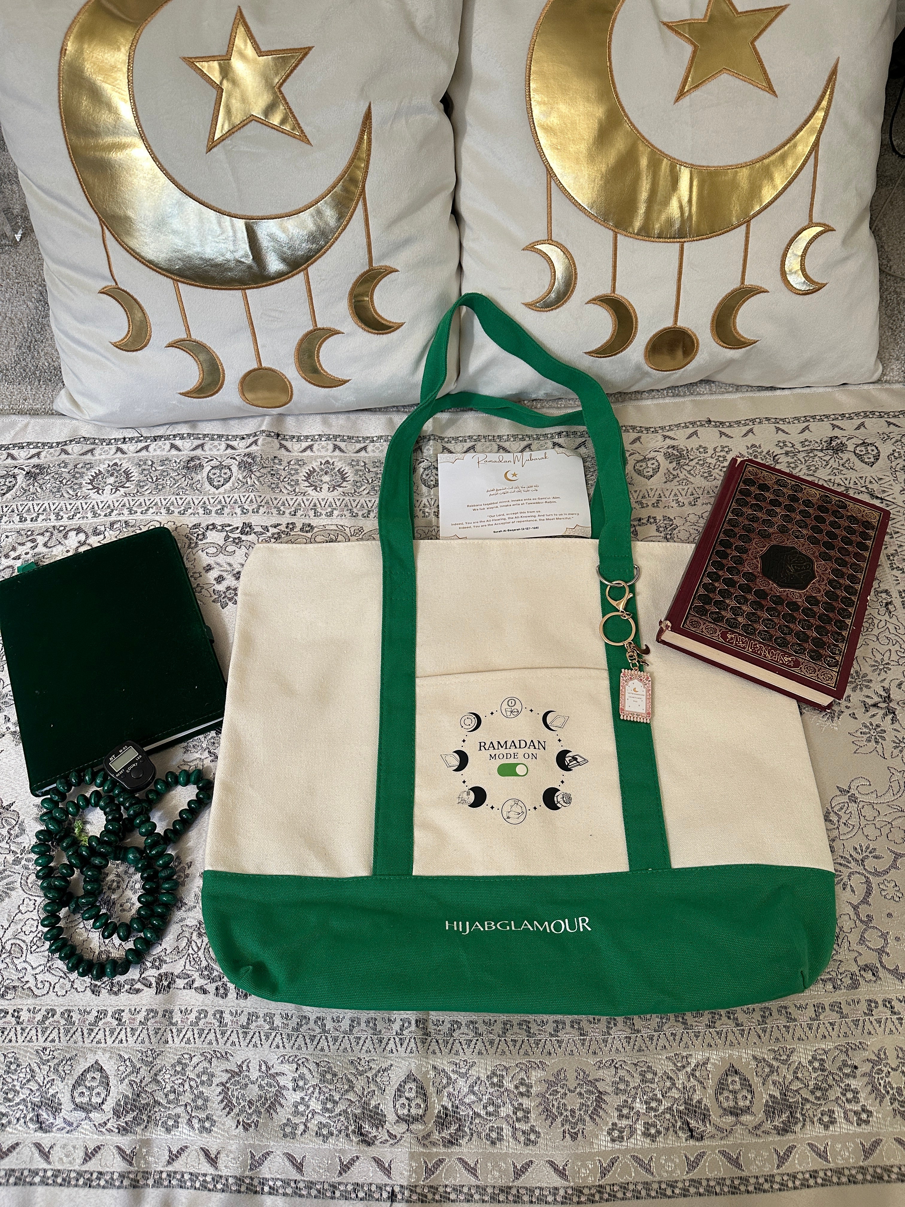Our Ramadan Tote Bag was thoughtfully designed to be more than just a bag, it’s a reminder of what this month is truly about. Whether you’re heading to the masjid for Taraweeh, packing your Qur’an and journal for a quiet moment of reflection, running errands before iftar, or attending a Ramadan gathering, this tote was made to move with you.